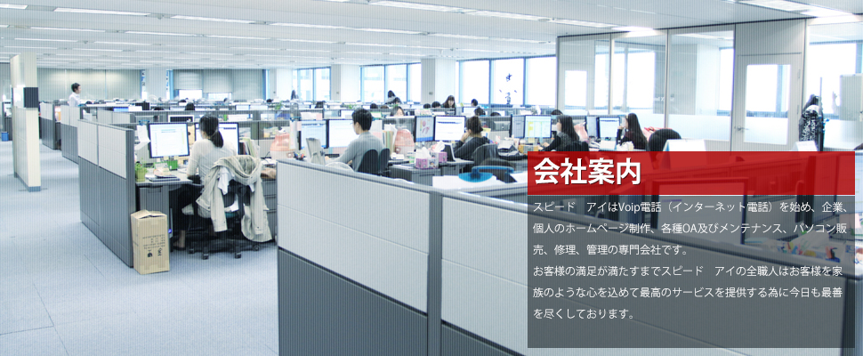 スピード アイはVoip電話(インターネット電話)を始め、企業、個人のホームページ制作、各種OA及びメンテナンス、パソコン販売、修理、管理の専門会社です。